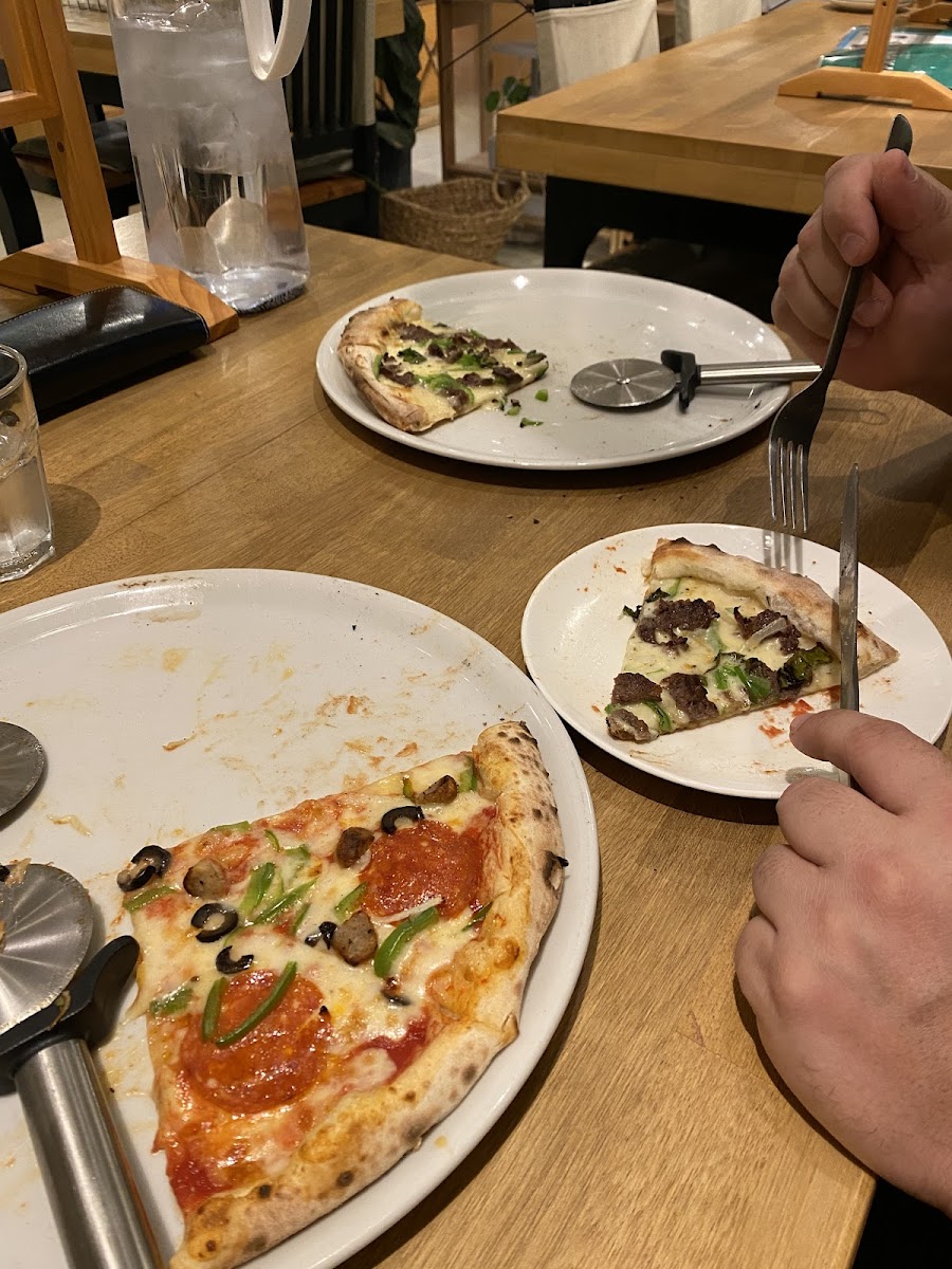 We have been wanting to stop by here for a while and this place didn't disappoint. Their pizza was very tasty and fresh. It seems like everything was freshly made. The vegetables pizza and the margrita pizza is what we ate. Their restaurant is a cool modern style with some Japanese seating and some "normal" seating. They also have a little kids area for them. I will be going back to try this again.
